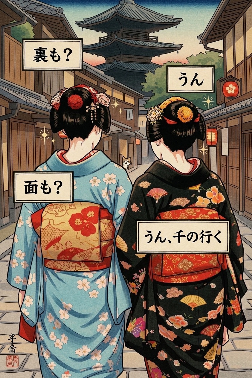 jeu de mot « erojiji » du plus mauvais goût sur le nom du principal maître de thé japonais et deux des écoles associées
