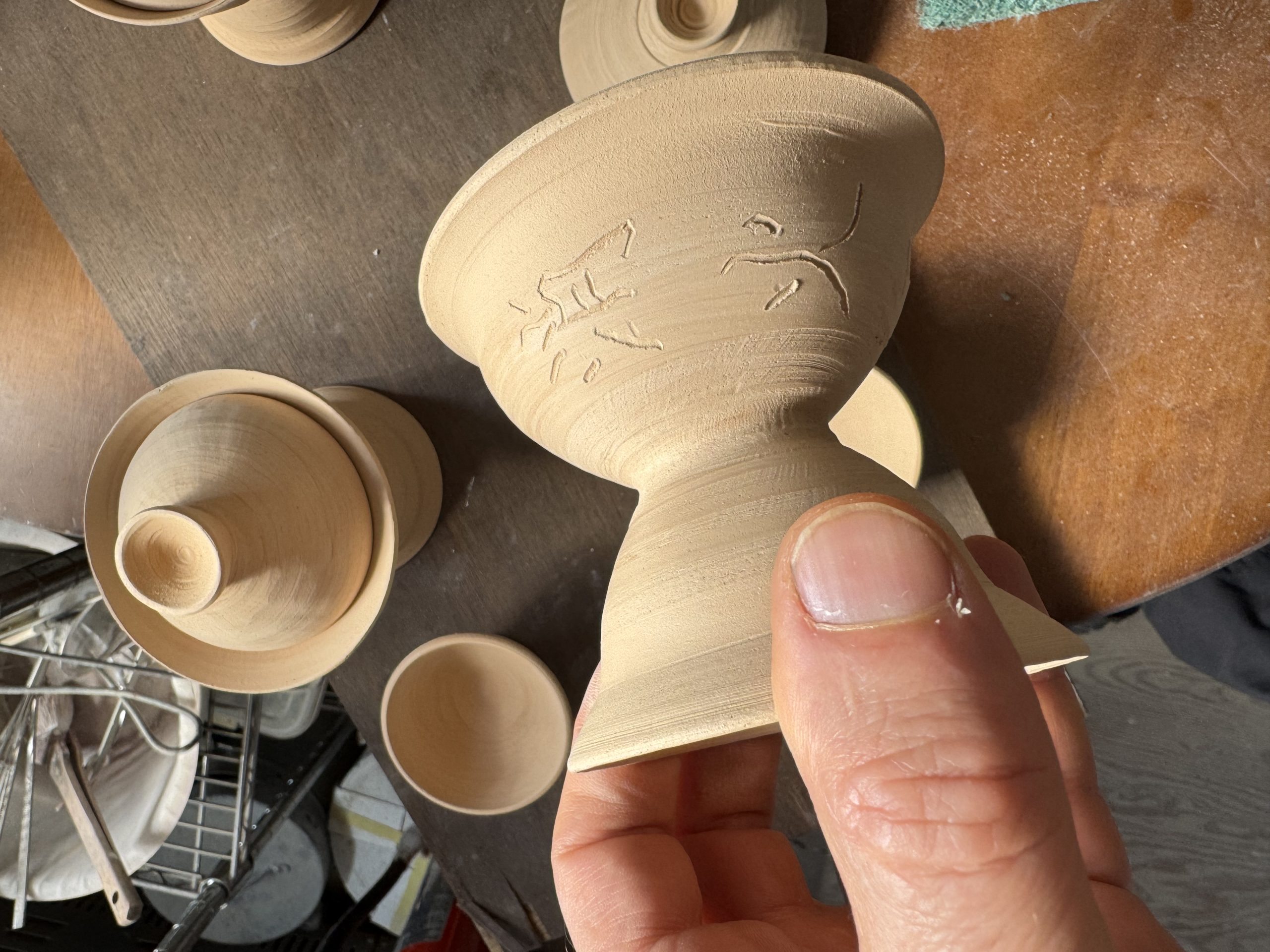 ce test est prometteur. si ma technique s’améliore sur cette argile pour que j’arrive à maitriser des pièces aussi petites sans clunkyness, si j’arrive à établir des formes de gaiwan qui auront « ma patte » (pied/téton, aile de la soucoupe volante), alors je pourrai avec fierté mettre ces pièces dans des boites et sur gallerykuma