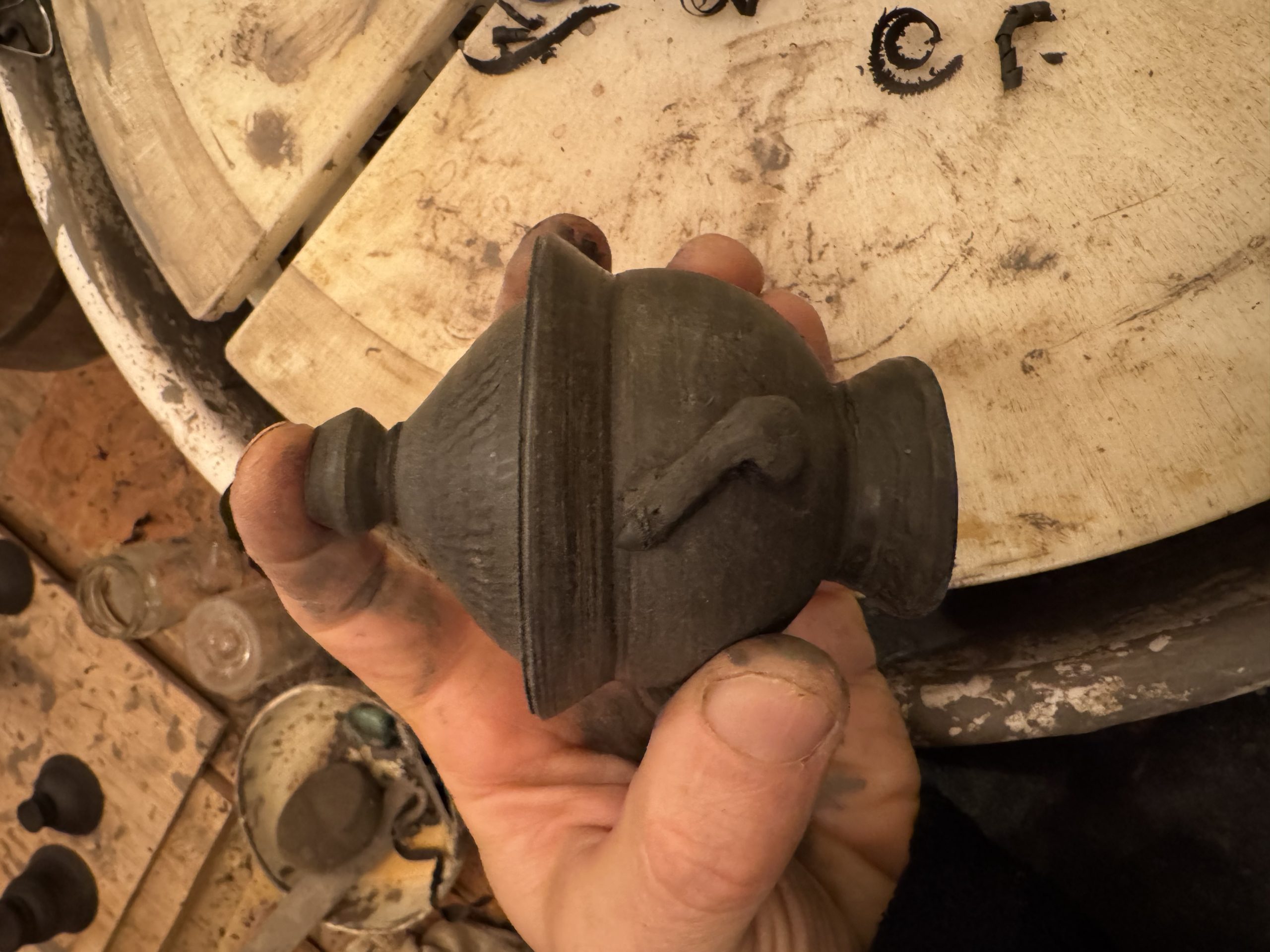 argile : bizen shozan (grise compacte : quel modèle ???) : quelle différence avec la « bizen » de tougeishop : une vraie bizen plastique, au tour, est vraiment fougna fougna… difficile à travailler car son hyperplasticité rend le moindre effleurement une catastrophe potentielle si l’objectif est de créer des pièces « symétriques ». vrai bonheur si en revanche l’objectif est de créer des pièces « organiques ». pour de petits gaiwans, c’est pour l’instant un challenge qui requiert de ralentir la vitesse du tour est d’avoir une concentration et une temporalité de chirurgien.